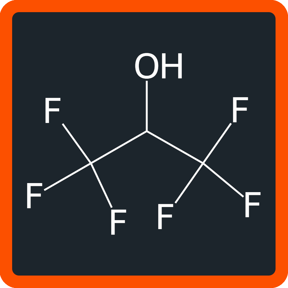 The key to its effectiveness lies in its extreme polarity: its six fluorine atoms are extremely electron withdrawing, and this especially polarises the O-H bond. This makes HFIP an exceptional hydrogen bond donor, to the point that it is mildly acidic. The high-polarity, strongly bonding character of it makes it excellent for stabilising ions and partially charged transition states, as well as transferring protons and influencing other intermolecular processes. Despite the extreme polarity, the large fluorine content also makes HFIP relatively volatile, allowing it to be easily removed from any process through distillation. As a result, it has been shown to benefit countless chemical reactions, and improve the solubility of all kinds of substances, even when used in small quantities.